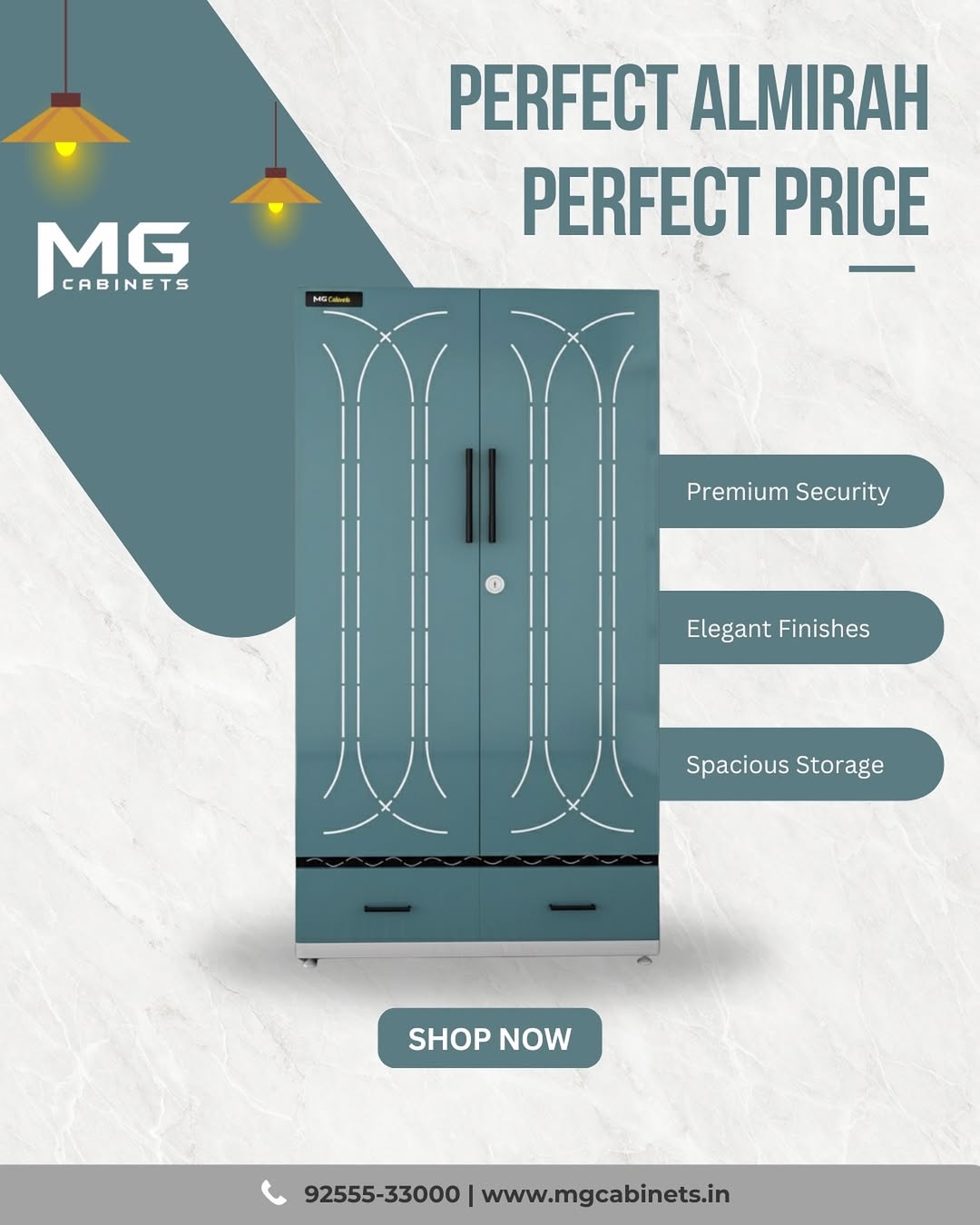 With over a decade of expertise, MG Cabinets delivers steel almirahs and wardrobes that combine strength, style, and smart storage. Designed for modern homes, every product is crafted with precision to ensure durability and elegance.