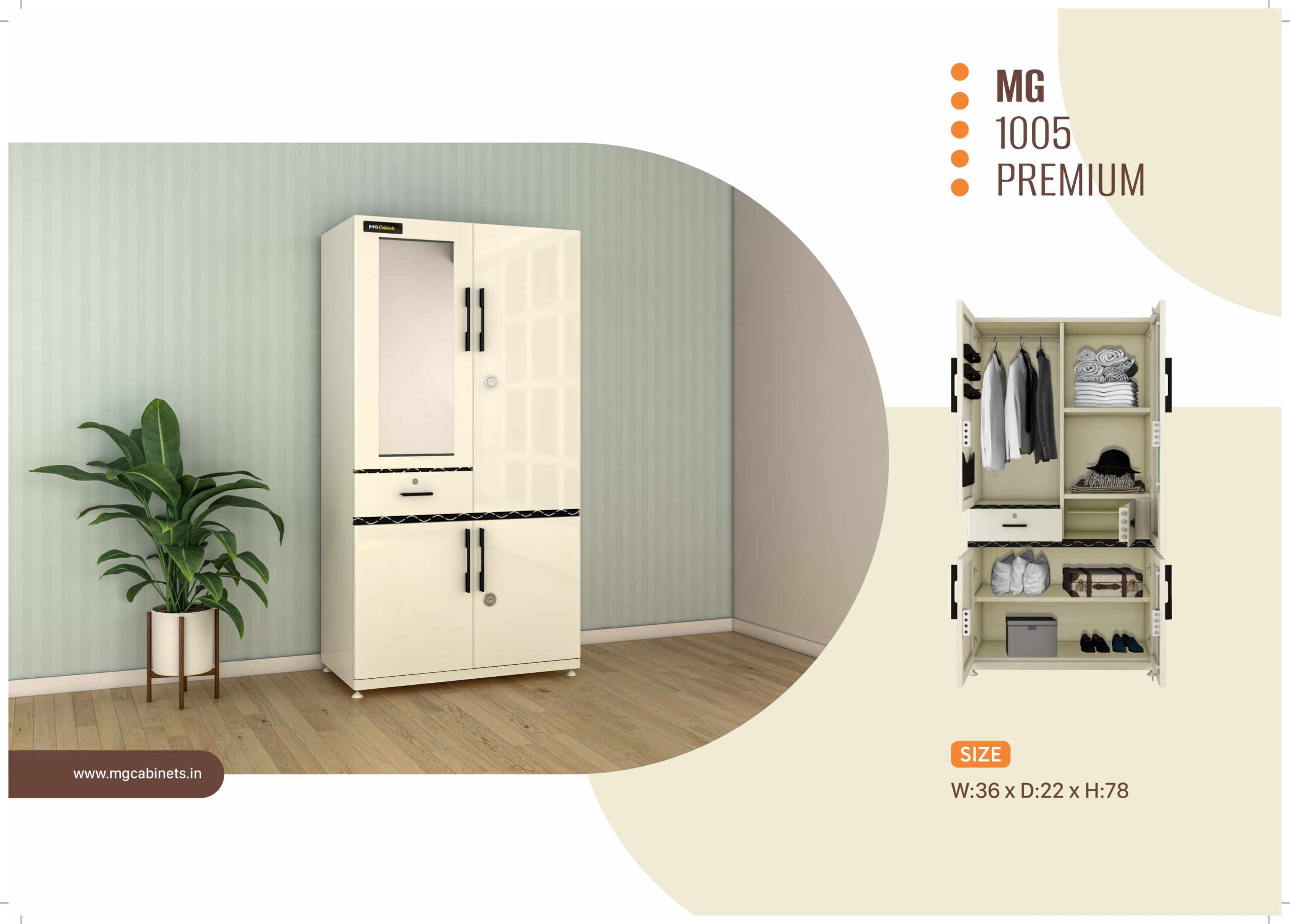 mgCabinerts offers a wide range of easy and affordable almirahs that are based on customer focused needs. With its wide experience in the area of manufacturing, mgCabinets has been able to cater to the growing demands of the urban and modern living.