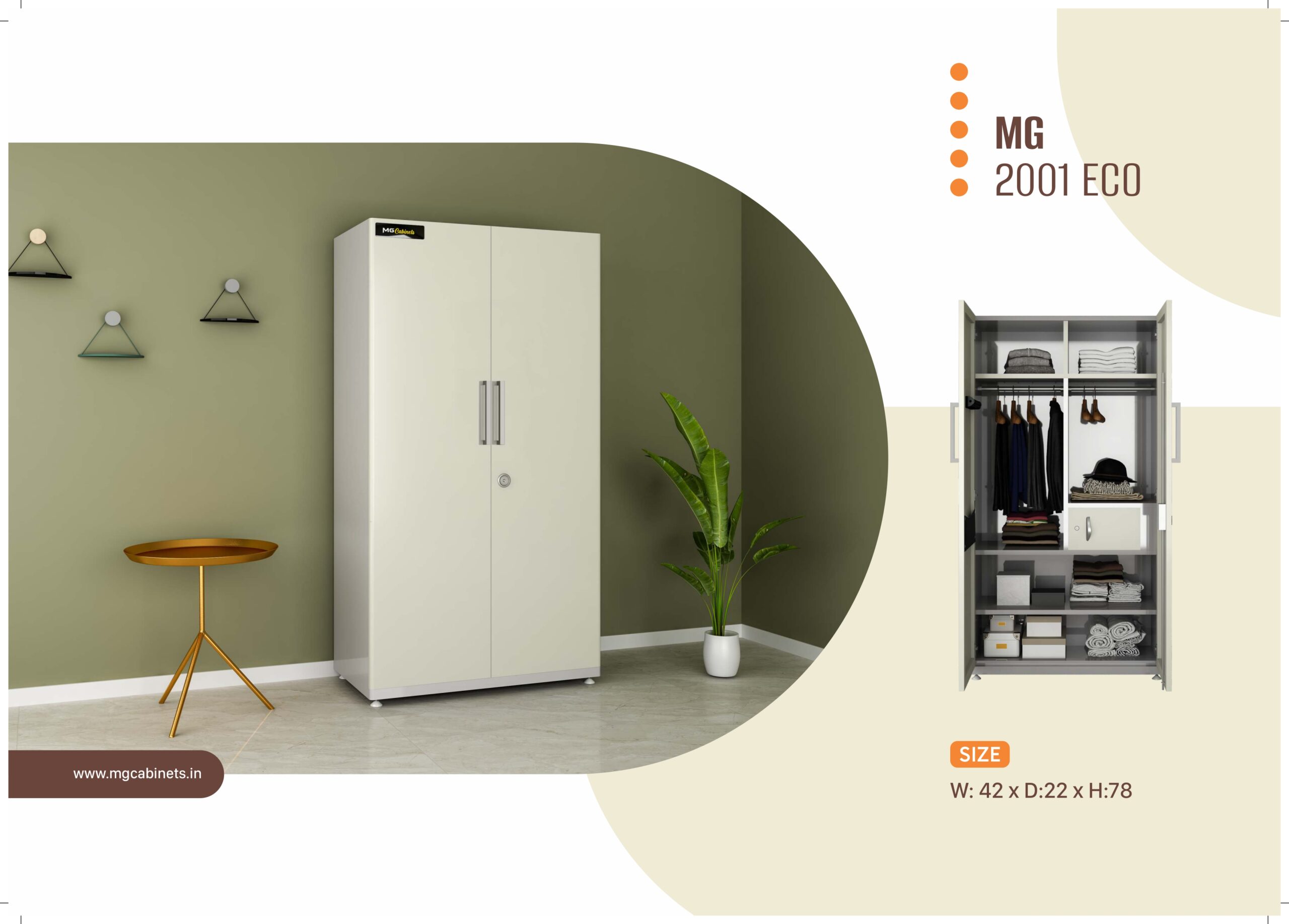mgCabinerts offers a wide range of easy and affordable almirahs that are based on customer focused needs. With its wide experience in the area of manufacturing, mgCabinets has been able to cater to the growing demands of the urban and modern living.