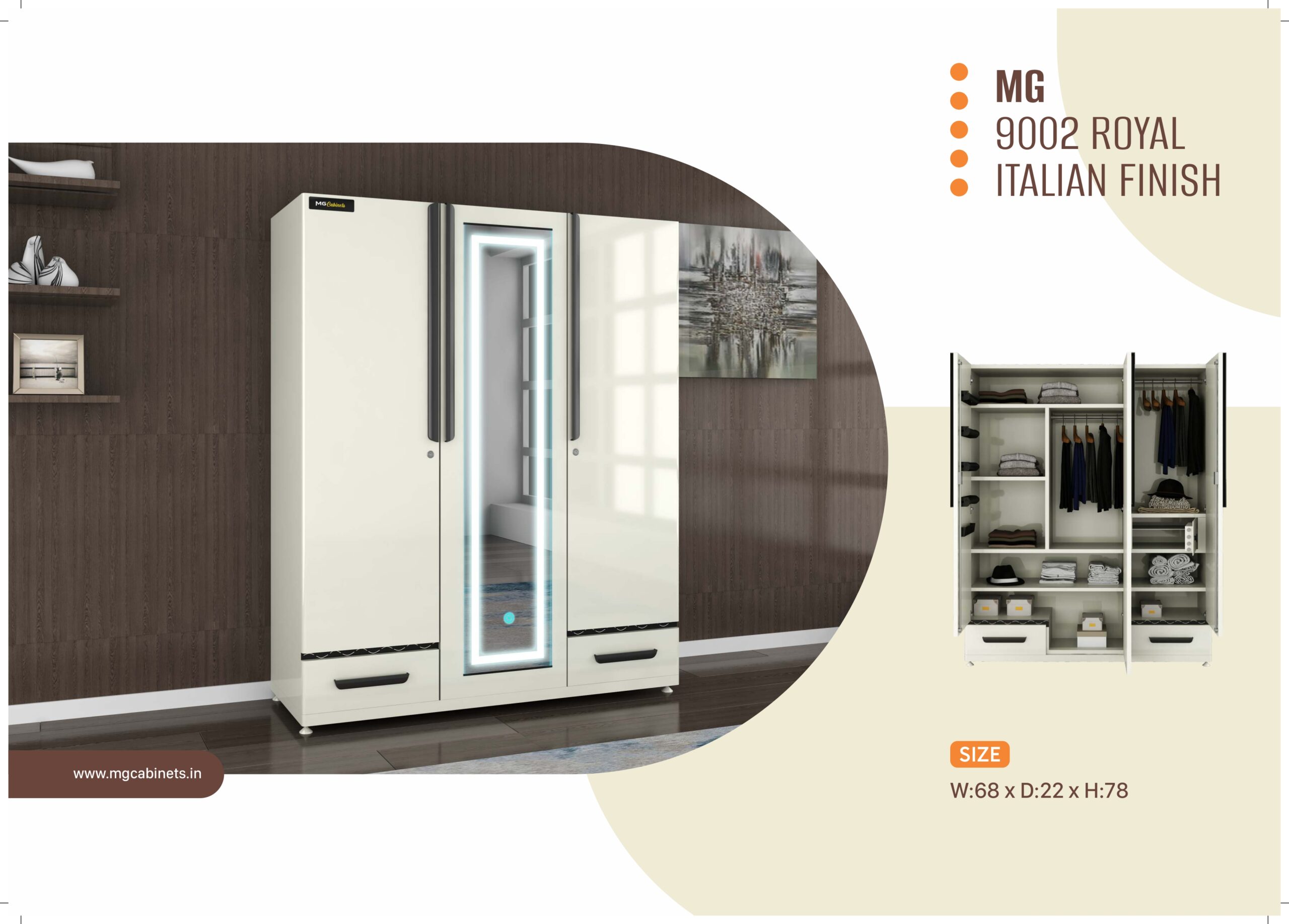 mgCabinerts offers a wide range of easy and affordable almirahs that are based on customer focused needs. With its wide experience in the area of manufacturing, mgCabinets has been able to cater to the growing demands of the urban and modern living.